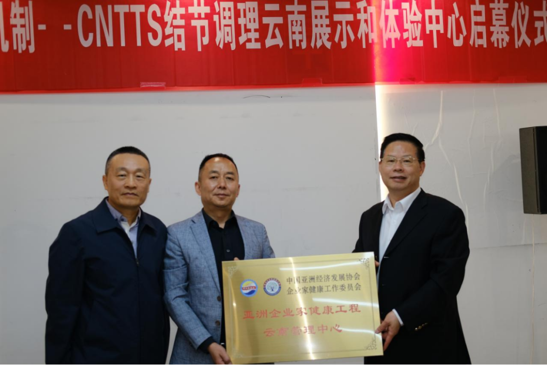 在众人见证下,授牌仪式将活动推向高潮。方明会长郑重向昆明奥美医疗美容有限责任公司授予“中国亚洲经济发展协会亚洲企业家健康工程云南管理中心”牌匾,向王忠总经理、赵现东、刘桐语分别颁发亚经协健康委云南办事处主任、副主任聘书,标志着昆明奥美医疗在云南健康管理领域的权威性与引领性得到认可。紧接着,华夏乘黄健康科技有限公司总裁胡翛玮向王忠总经理颁发“CNTTS结节调理云南展示与体验中心”牌匾,这意味着CNTTS这一前沿的结节调理技术将以昆明为起点,在云南地区加速推广应用。启动仪式与交流会后,“CNTTS结节调理云南展示与体验中心”举行了结节调理体验活动。